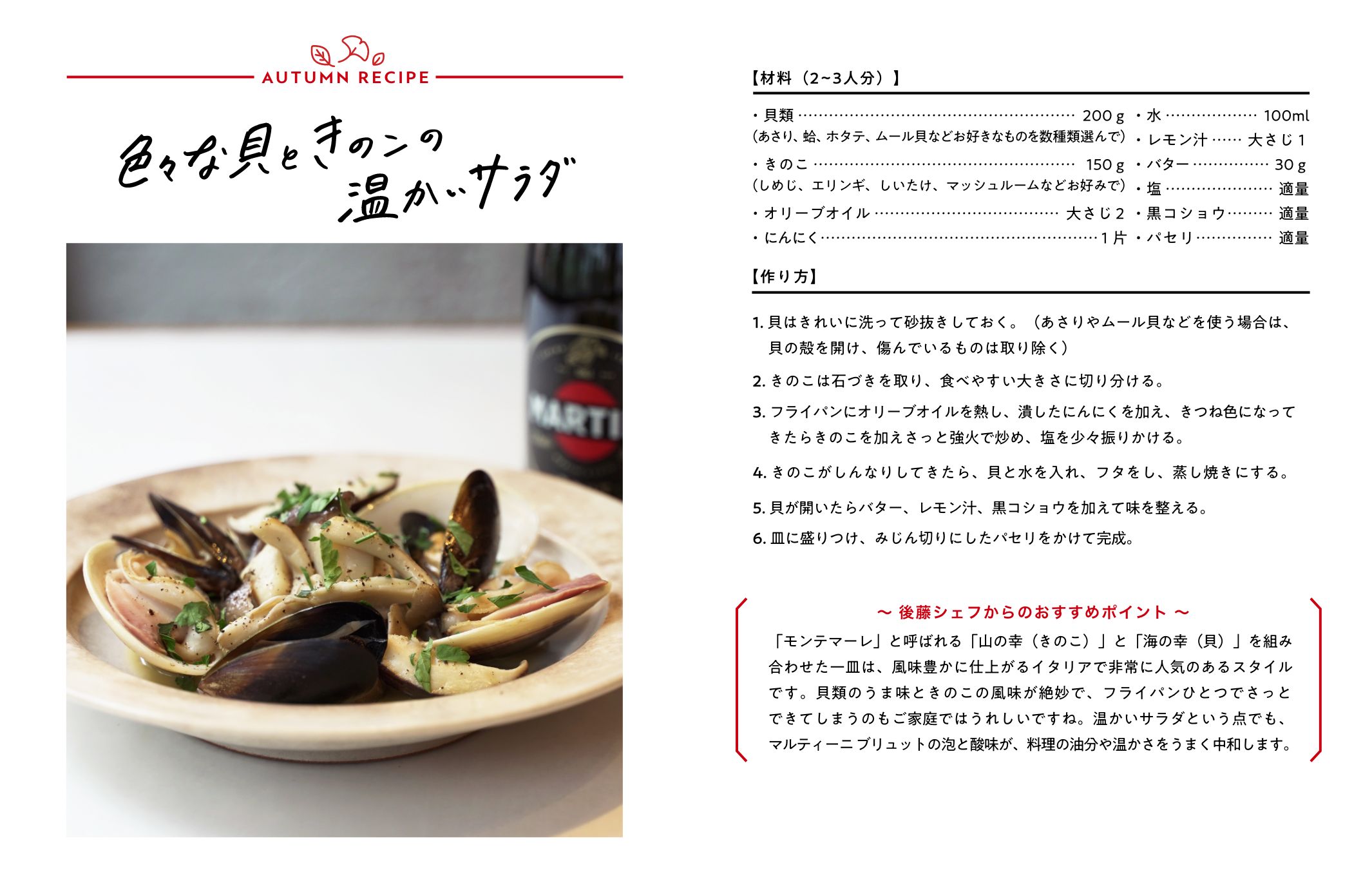 爽やかさと旨味のバランスが良いマルティーニ ブリュットは、イタリアンとの相性が抜群!広尾のリストランテ「メログラーノ」後藤祐司シェフに、ご自宅でも作れるこの時期にぴったりのおすすめレシピをご紹介いただきます。爽やかさと旨味のバランスが良いマルティーニ ブリュットは、イタリアンとの相性が抜群!広尾のリストランテ「メログラーノ」後藤祐司シェフに、ご自宅でも作れるこの時期にぴったりのおすすめレシピをご紹介いただきます。